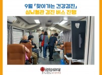 [9월 찾아가는 건강검진 소식] 9월 18일(목) 오전 9시 30분부터 16시까지 찾아가는 건강검진 심뇌혈관 검진버스가 운영되었습니다.이번 검진에서는 동맥..
